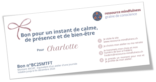 PS: si vous souhaitez offrir un bon pour un programme de 8 semaines, Marie se tient à votre disposition pour vous présenter l’ensemble de nos offres : marie@ressource-mindfulness.ch